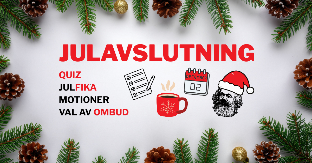 Nu närmar sig årets näst sista medlemsmöte, vår julavslutning! Vi samlas vi för en mysig kväll med fika, politik och gemenskap.